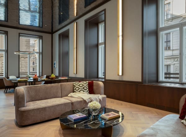 Enjoy the views of the peaceful inner courtyard, the historic streets of Vienna or the iconic Stadtpark with a minibar with local delights.