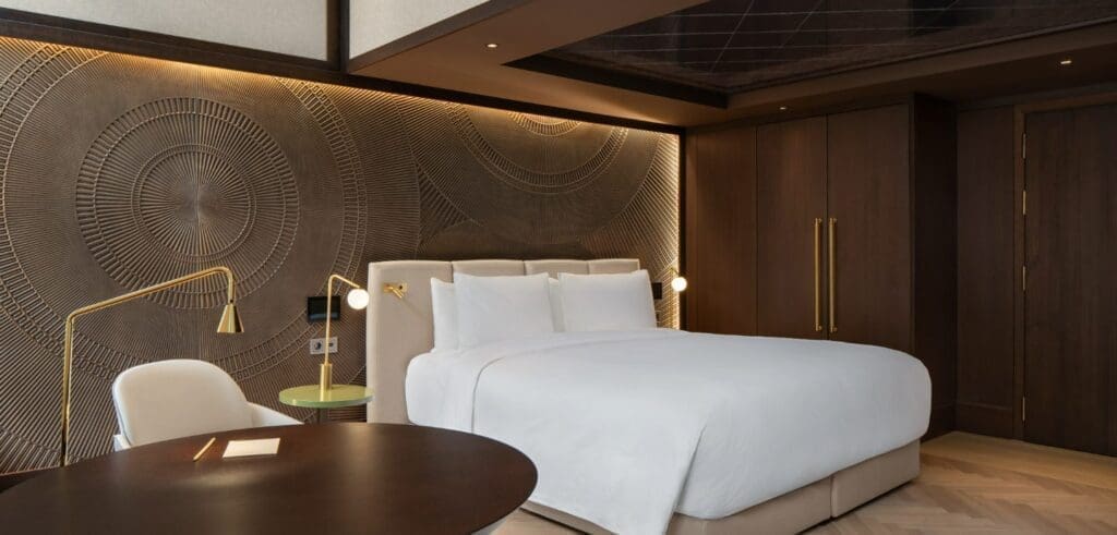 • A serene room with an alluring bed and a contemporary bathroom with an elegant rainfall shower, some featuring a bathtub – the complete package designed for world explorers.