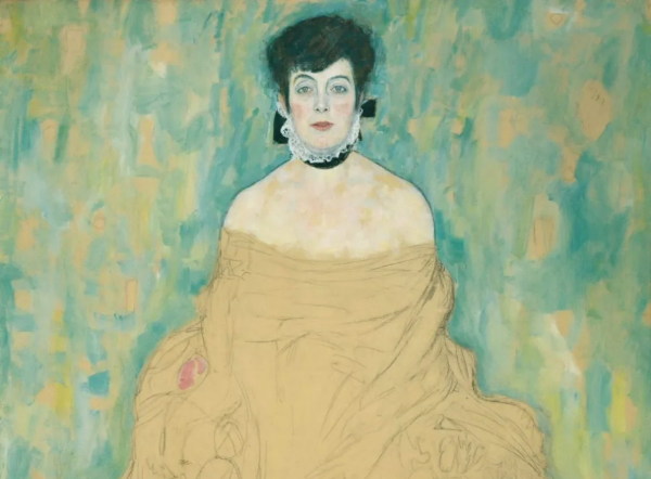 Klimt was commissioned to paint Amalie’s portrait in 1913/1914. During those years, the master artist likely completed all areas visible today of the model’s face and shoulders. These parts have been worked on to perfection and are essentially finished. In terms of painting technique, the way in which Klimt meticulously brings out the contrast between Amalie’s bright complexion and her dark, fashionably styled hair and eccentric black collar with white lace tied back in a bow is particularly sophisticated.